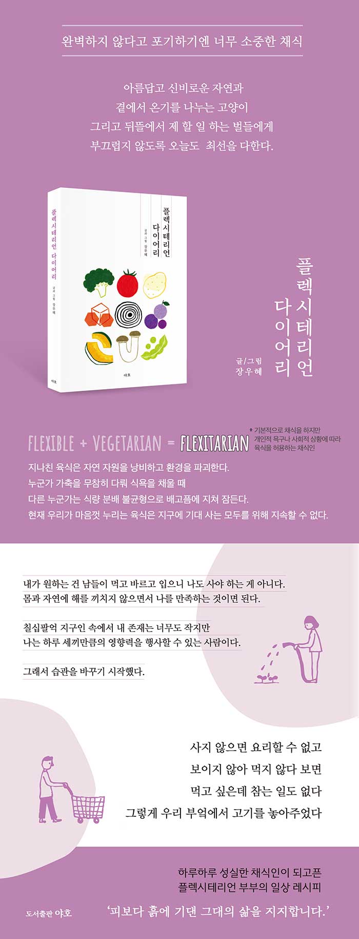 이 책은 이런 모순 가득한 삶을 ‘유연함’이라는 단어로 포장한 9할 채식인의 이야기다.