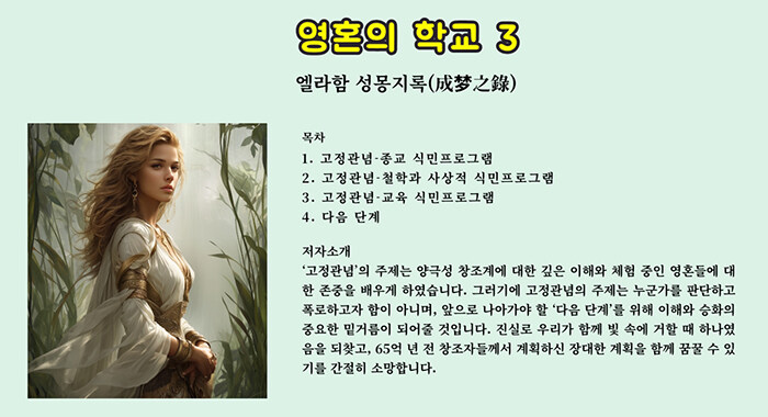 때때로 인간을 우주의 축소판인 소우주라 표현합니다. 이처럼 체험 중인 현실의 구조와 창조계의 작동 방식을 아는 것은 무지에서 깨어나 삶의 주파수를 바꿀 수 있는 열쇠가 되며, 고정관념들에 대하여 지속적인 변화를 일으킵니다. 그러므로 근원에 대한 이해와 의식의 확장은 삶의 관점을 뒤집고, 고정관념의 속박으로부터 풀려나 무한한 자유와 용기를 심어줄 것입니다.