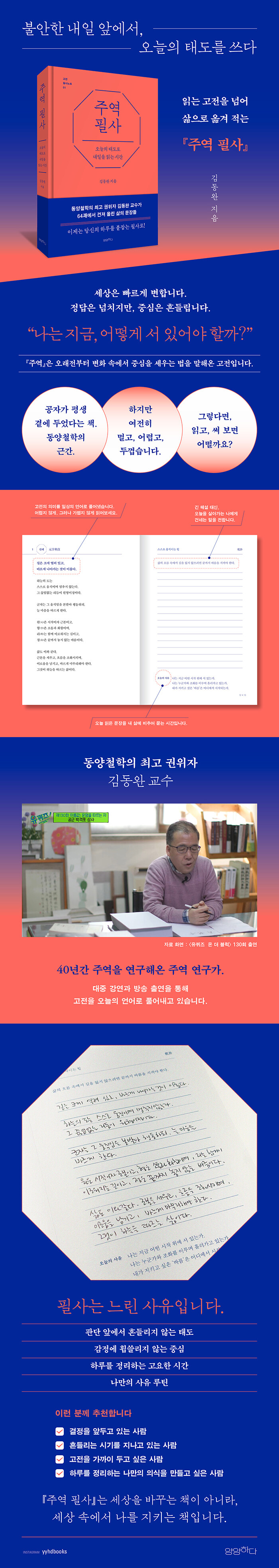 『주역 필사』는 이 고전의 정신을 오늘의 언어로 불러내어 변화 속에서도 삶의 중심을 세우기 위한 책이다.