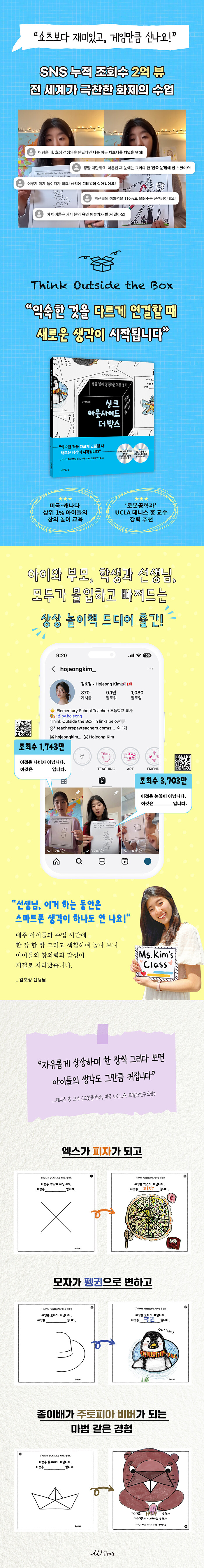 아이들의 그림을 통해 아이들만의 순수한 관점과 한계 없는 창의력에 감탄한 선생님은 아이들의 작품을 모아 자신의 SNS에 작은 그림 전시회를 열기 시작했다. 엑스(X)가 피자가 되고, 모자가 펭귄으로 변하고, 부메랑이〈케이팝 데몬 헌터스〉더피로 변하는 아이들의 그림 영상은 ‘누적 조회수 2억 뷰’를 기록하며 전 세계적인 관심을 받았고, 아이들의 창의력을 끌어낸 김호정 선생님의 교육 철학은 수많은 부모와 교사, 교육전문가로부터 ‘진정한 창의력 교육’이라는 찬사를 받았다.
