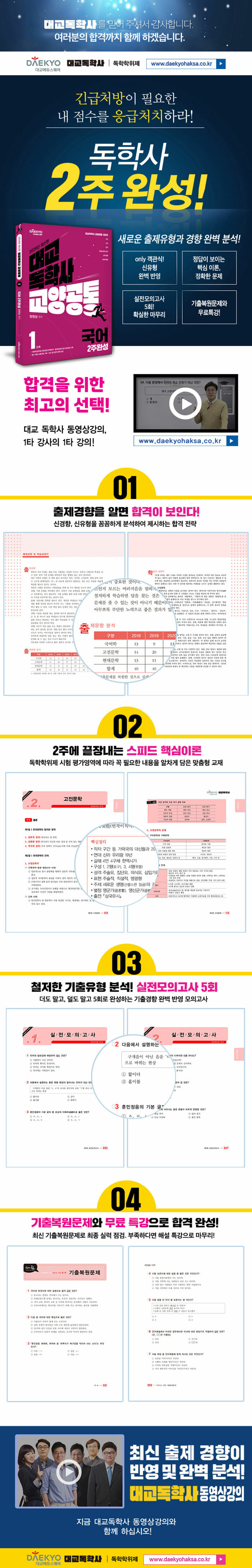 · 제목 : 대교 독학사 교양공통 1단계 국어 2주완성 (최신 평가영역 반영, 신유형 완벽 대비)