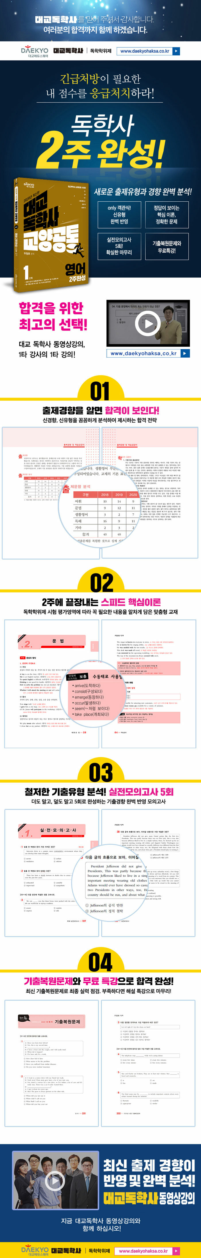 · 제목 : 대교 독학사 교양공통 1단계 영어 2주완성 (최신 평가영역 반영, 신유형 완벽 대비)